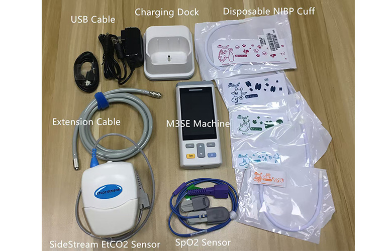 Датчики и соединительные кабели: они могут включать датчики для мониторинга различных физиологических параметров, таких как электрокардиограммы, браслеты артериального давления, пробоотборники кислорода в крови и т.д., а также соответствующие соединительные кабели для подключения датчиков к основному блоку для передачи данных мониторинга.